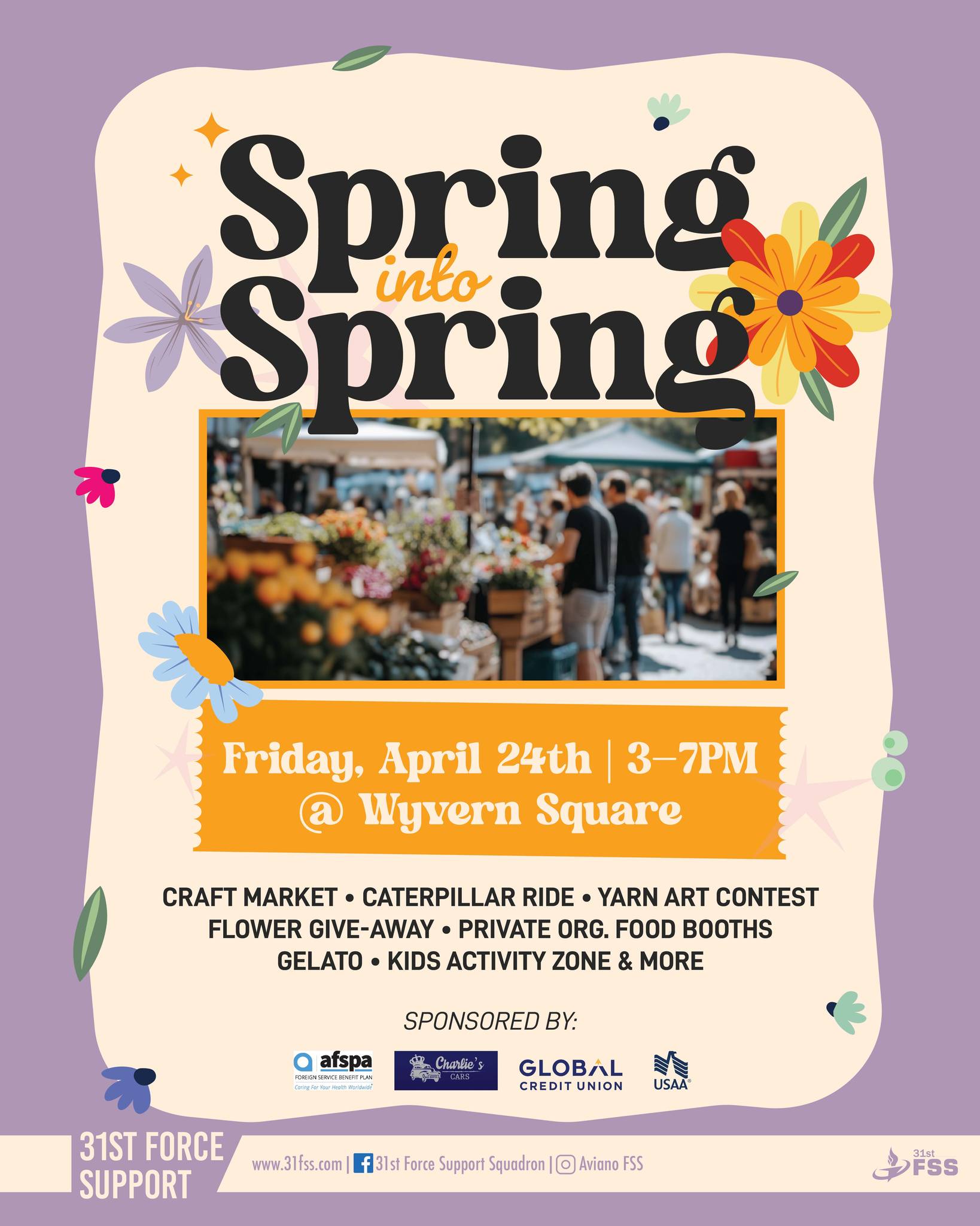 Celebrate the season with us at Spring into Spring on Friday, April 24th, from 3 PM to 7 PM in Wyvern Square (BX Parking Lot)!